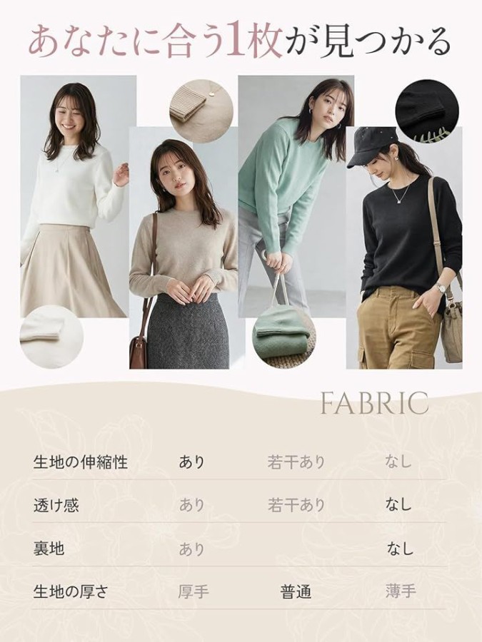 パンツにもスカートにも合わせやすく、インしてもアウトしてもバランス良く決まります。