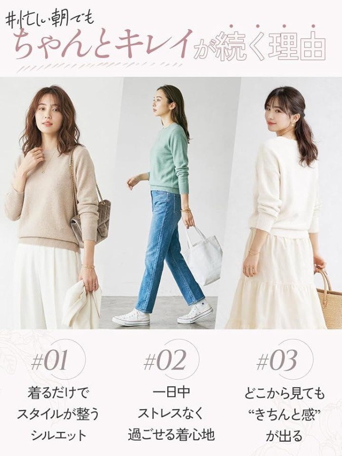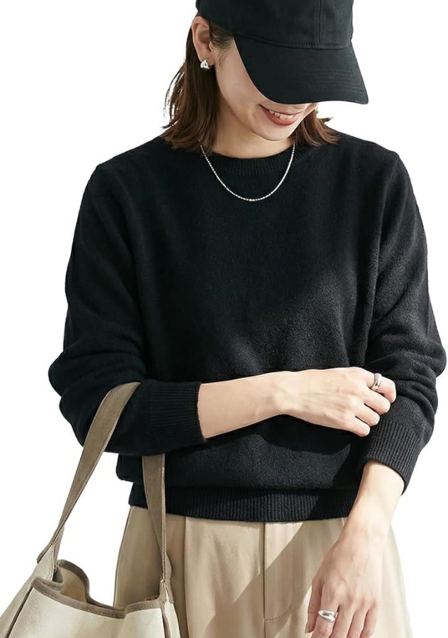シンプルだからこそ素材感とシルエットにこだわった、上品見えニット。