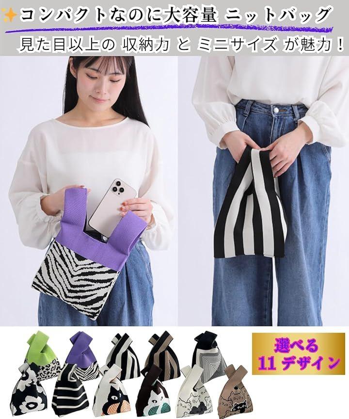 柔らかいニット素材が伸縮し、長財布・スマホ・ハンカチなどもすっぽりと収納。