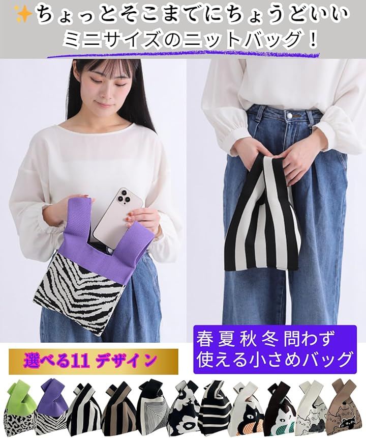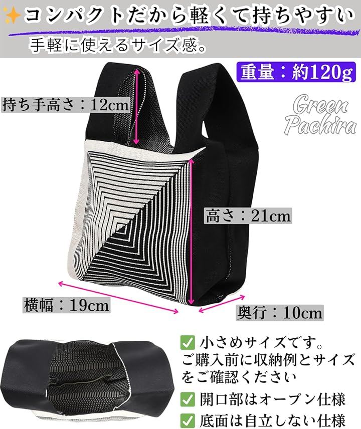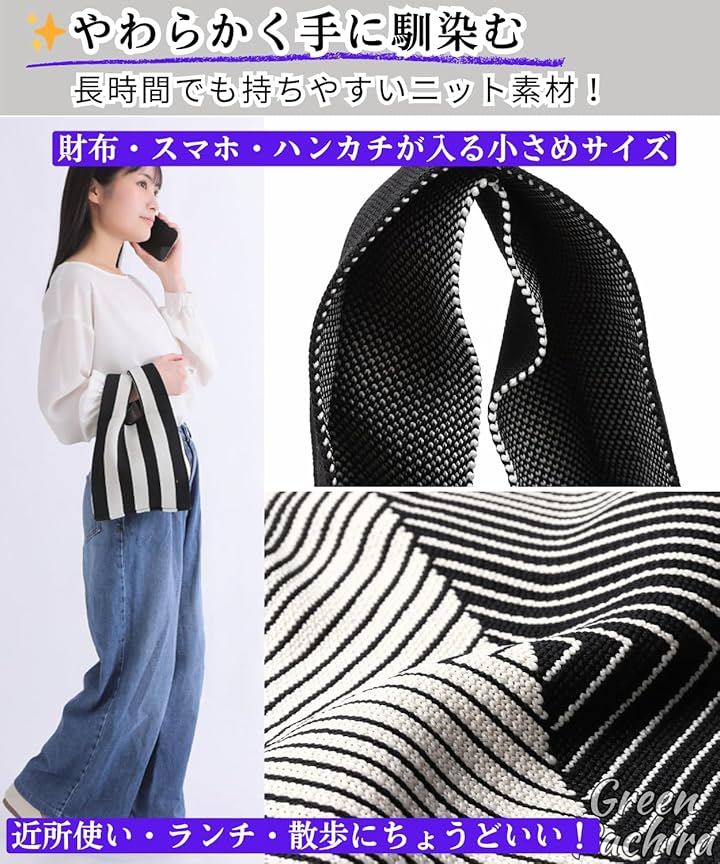 「ちょっとそこまでに、ちょうどいいニットトートバッグ」 厚みのあるニット素材を使用した、レディース向けの小さめトートバッグです。
