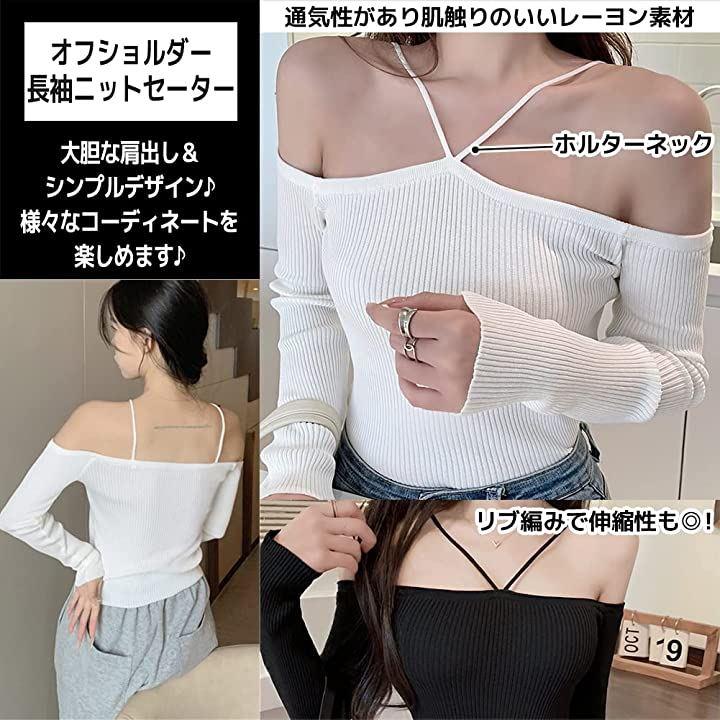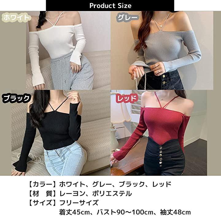 リブ編みですので伸縮性があり、体型を選ばず女性らしいボディラインを魅せることができる肩出しトップスです。