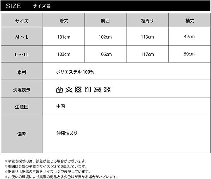 M-Lサイズ:着丈101cm/胸囲102cm/裾まわり113cm/袖丈49cm