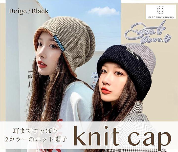 「耳まですっぽりニット帽」シンプル無地でシーズンレス・やわらかいリブニット・よく伸びる伸縮性と暖かさ・マスト防寒アイテム