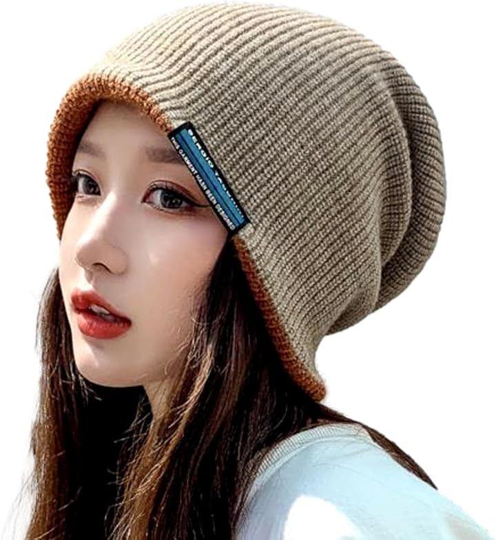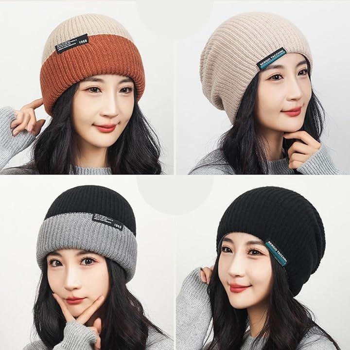 「耳まですっぽりニット帽」シンプル無地でシーズンレス・やわらかいリブニット・よく伸びる伸縮性と暖かさ・マスト防寒アイテム