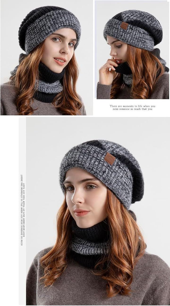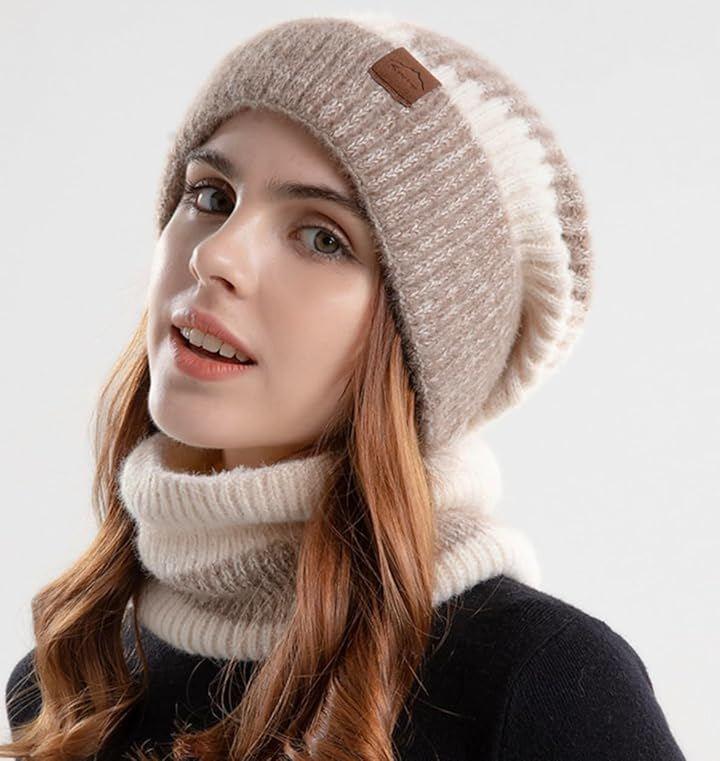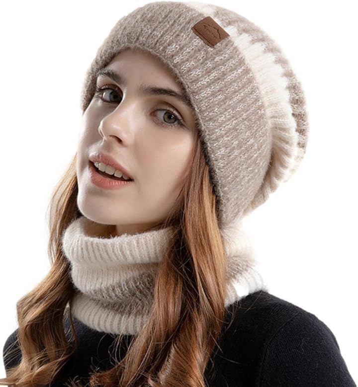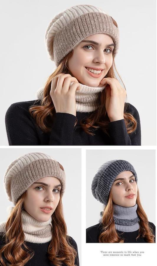 Knitted Hat, Neck Warmer, Loose Fit, Fluffy, Cold Protection, Women's, Knit Cap, Slimming Face, Skiing, Snowboarding