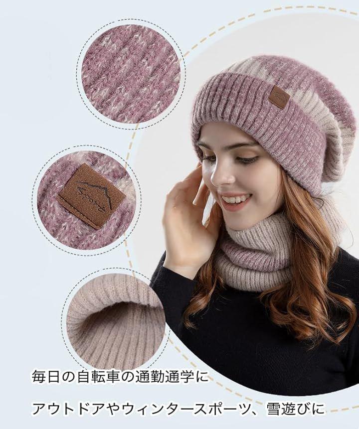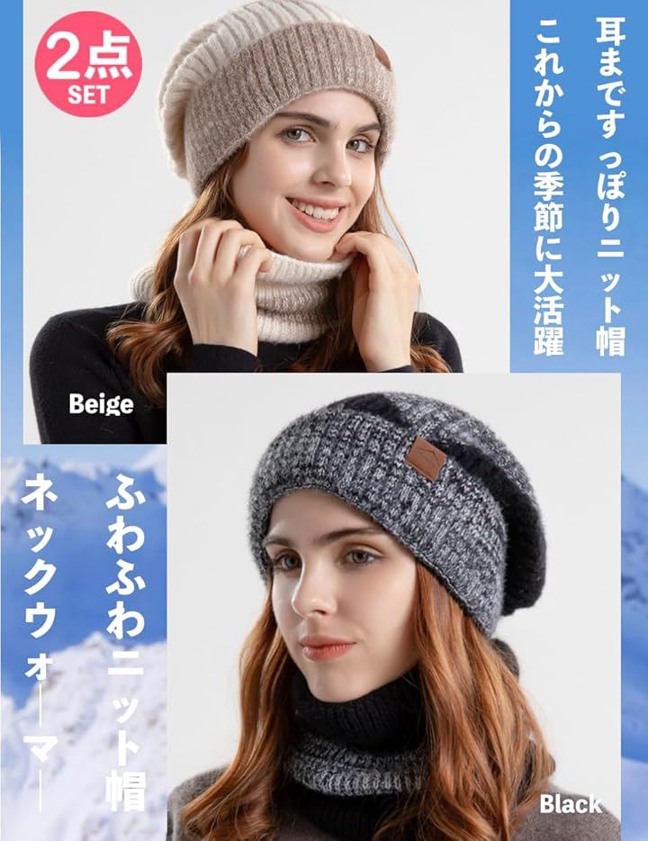 「フリーサイズ」頭囲:約56-60cm、ネックウォーマー:24x20cm