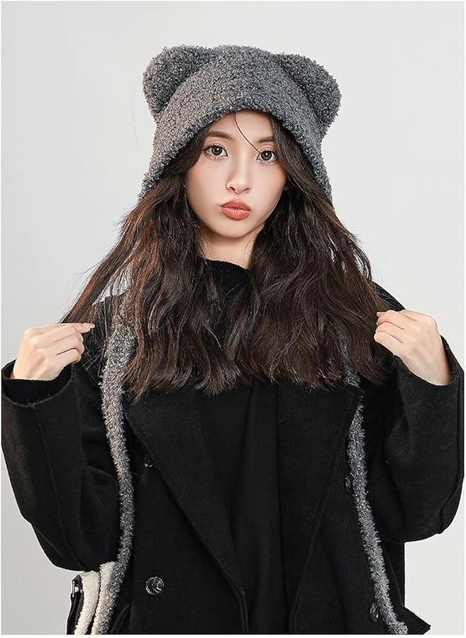 「デザイン」耳まですっぽりニット帽・シンプル無地でシーズンレス・長めの紐付き