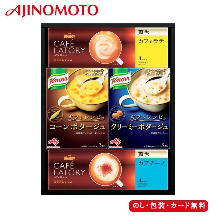 ギフトレシピのコーンポタージュ、ギフトレシピのクリーミーポタージュ各(3袋)、カフェラトリースティック プレミアム 贅沢カフェラテ、贅沢カプチーノ 各4P×各1【乳、小麦】