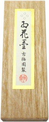 菜種油煙墨。濃墨では深みのある純黒で、淡墨では茶紫系の黒です。伸びも良いです。