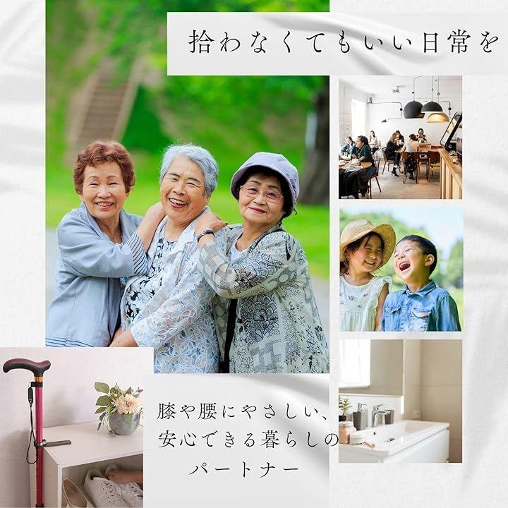 杖の転倒を防ぎ、しゃがむ負担を軽減。