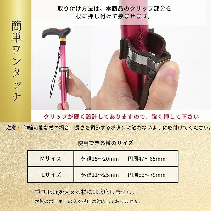 杖の外径15mm~20mmに対応(Mサイズ)。