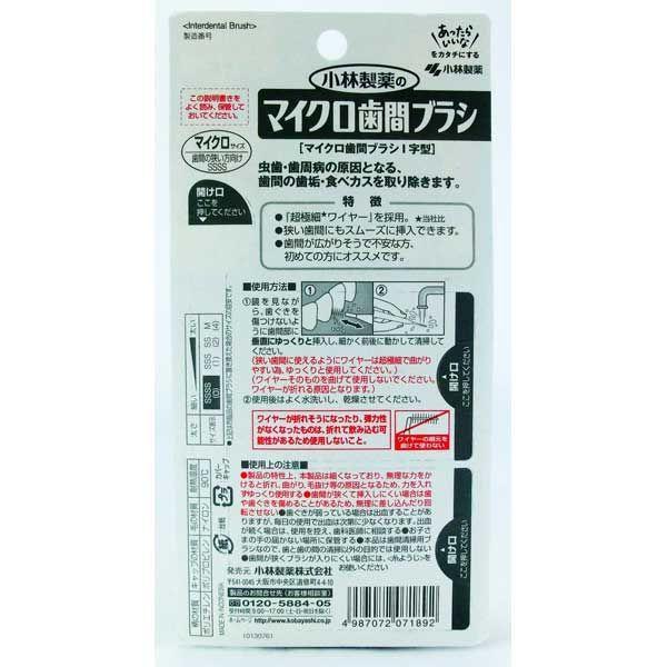 【使用上の注意】・製品の特性上、本製品は細くなっており、無理な力をかけると折れ、曲がり、毛抜け等の原因となるため、力を入れずゆっくり使用する。・歯間が狭くて挿入しにくい場合は歯や歯ぐきを傷めることがあるため、無理に差し込んだり回転させない。・歯ぐきが弱っている場合は出血することがありますが、毎日の使用で出血は次第に少なくなります。出血が続く場合は、使用を控え、歯科医師に相談する。・お子さまの手の届かない場所に保管する。・本品は歯間清掃用ブラシなので、歯と歯の間の清掃以外の目的では使用しない。・歯間が狭くブラシが入りにくい場合には、糸ようじをお使いください。