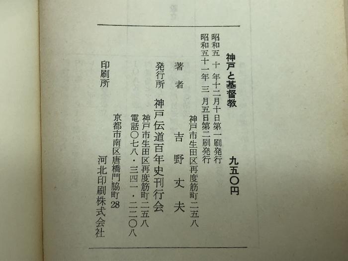 Kobe and Christianity: 100 Years of Christianity in Kobe (1975) Kobe Evangelism 100 Years of History Publishing Committee, Yoshino Takeo