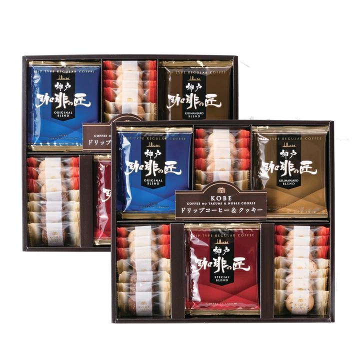 スペシャルブレンドコーヒー、オリジナルブレンドコーヒー、キリマンジャロブレンドコーヒー各7g、紅茶クッキー、カフェキャラメルクッキー、モザイククッキー×各6、プレーンクッキー、チョコアーモンドクッキー、セサミクッキー×各8