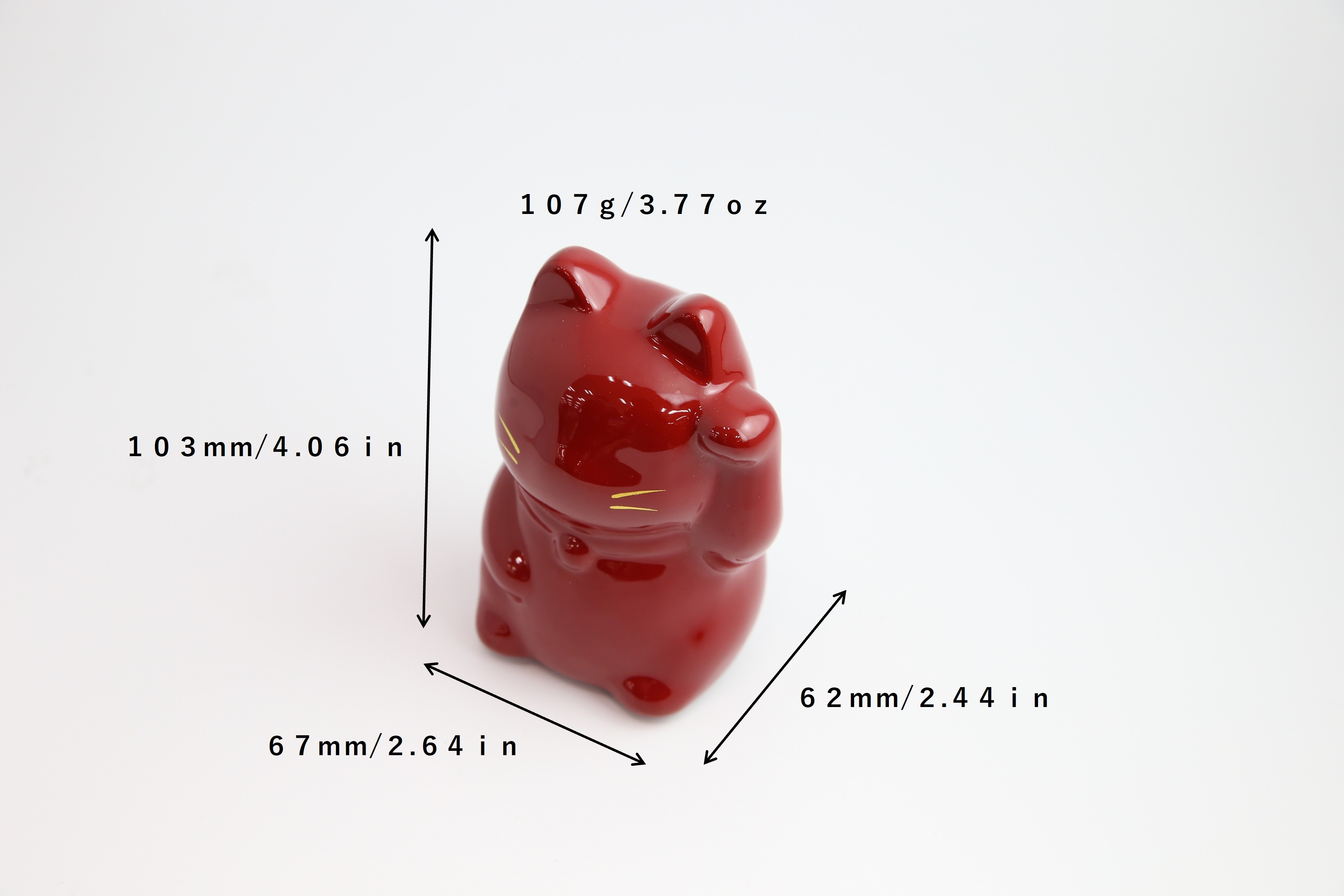 福井県鯖江市に1500年前から伝わる越前漆塗りを施した招き猫です。その昔より越前漆塗りは災いを防ぐと言われ、戦国時代には戦士の鎧兜・甲冑にも漆塗りが多用されました。また日本の神社・仏閣では建屋構造物・鳥居も含め古くから用いられます。KODAI WORKSでは漆塗りアーティストである山内古代氏により、現代の技法も取り入れたJapanese漆ARTという世界観で各種の招き猫に願いの漆膜を形成しています。極薄漆膜を多層に重ねることより、立体物へ透明感や重厚感・光沢感・陰影までも与え漆塗りの命を吹き込んだものです。その多くの漆膜は 各技法・色に意味付けされる願いに変わり招き猫の姿を仮りエネルギーとして感じていただけるものです。日本古来からある最も不変の2色(漆黒・朱赤)。落ち着いた深い黒は深いエネルギーの象徴として神社仏閣に取り入れられています。朱赤は情熱的な赤として6000年前の遺跡よりも発掘された最も愛された縁起カラーとして知られています。いつまでも変わらない健やかな日々を送れる願いが込められているものです。国際輸送基準を満たす 漆塗り製品 安全証明書 付きです。