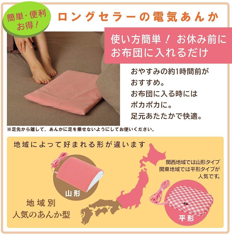 簡単に持ち運んでコンセントに繋ぐだけ!シンプルかつ最強の睡眠グッズ 電気あんかの生地に、細菌が発する「嫌な臭い」を抑える抗菌防臭加工を施している やわらかソフトタイプなので、ぶつかっても痛くない ソフトあんかなので暖房面が広いため、布団の中を広範囲に暖める Sマーク取得済み電気製品なので、安全性が高くて安心
