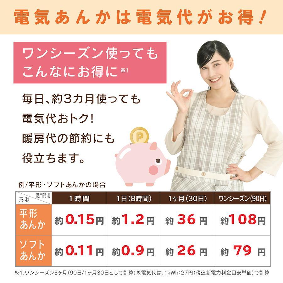 あんかの電源を入れて、約1時間使用した場合にかかる電気代は約0.1円です。