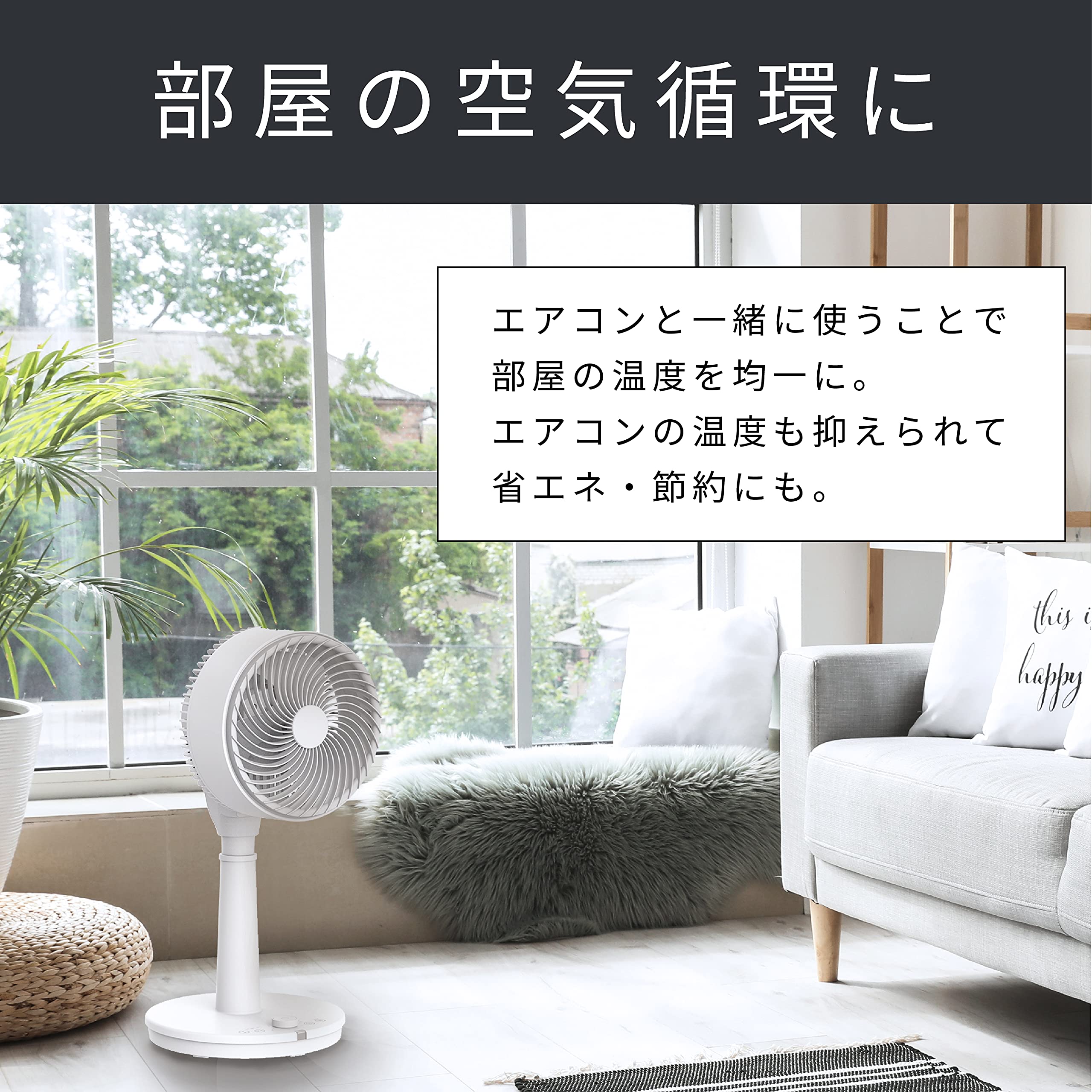 仕様・電源:AC100V 50/60Hz共用 ・首振:左右:約90・180・360度(自動)、上下:約80度(自動) ・切タイマー:1・2・4・6時間 ・コード長:約1.8m ・付属品:電源コード、リモコン、ボタン電池(CR2032×1個)、取扱説明書(保証書付)