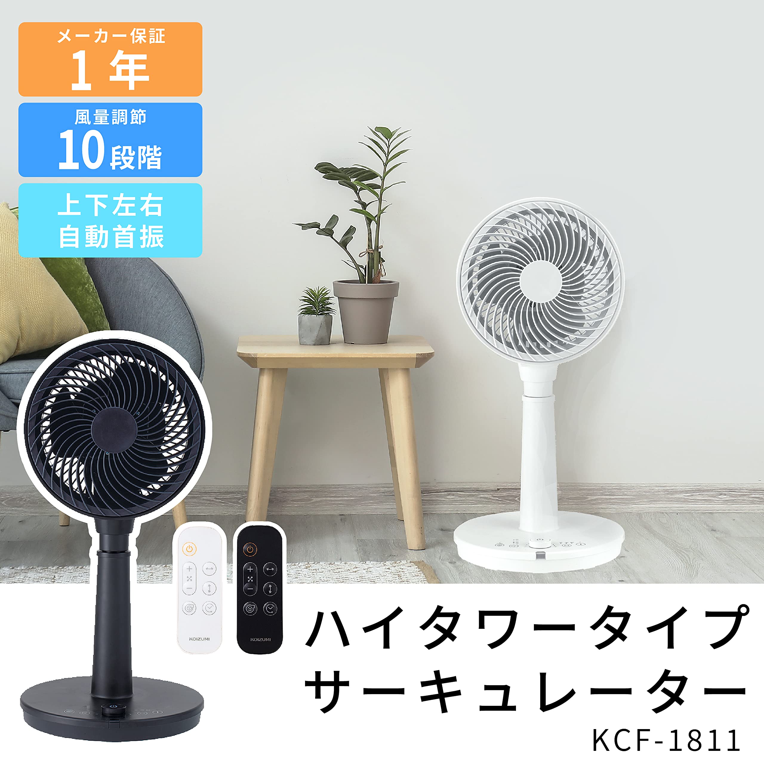 Koizumi Circulator, High Type, DC Motor, 10 Wind Speed Levels, Timer, Automatic Swing, Black, KCF-1811/K
