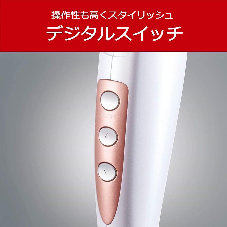 大風量2.0?/分(※1)、パワフルな風でより速く髪をブロー。より多くの風を、より速く届けることで髪をやさしく美しく乾燥させるために形状の異なる2つのファンを搭載しました。