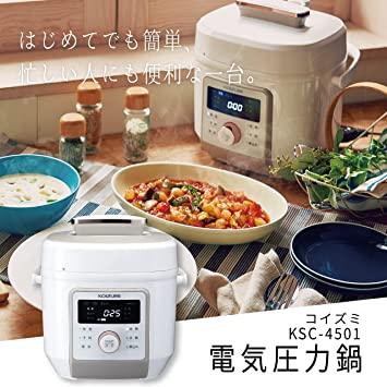 通常1-5営業日で発送:コイズミ マイコン電気圧力鍋 2.0L 6種類自動メニュー ワンタッチ 55品搭載レシピブック付き ホワイト KSC-4501/Wサイズ: 2.0L(炊飯5合)