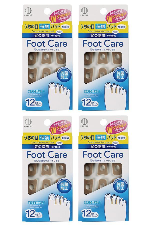 【特殊2層構造らくらく快適Wクッション】足指のまめ、うおの目、たこなどが当たる部分に貼って保護し、足の健康をサポートします。約2.2×1.6cmの台形の変形パッドが指間にフィット。中央に穴があいており、厚さ約3mmの特殊2層構造のらくらく快適Wクッションで、当たりをやわらげます。 【うおの目にお悩みの方おすすめ】足指のまめ、うおの目、たこが気になる方、うおの目を保護して当たる痛みをやわらげたい方におすすめの保護パッドです。抗菌加工、日本製、たっぷり使える12枚入×4個セットです。 【使い方】まず足をきれいに洗ったあと、よく乾かしてください。次に、うおの目やたこの痛い部分がパッドの穴の中央になるように軽く押し当てて、皮膚に直接貼ってください。 【使用上の注意】・パッドをはくり紙からはがす際は、破れないようゆっくりはがしてください。・貼付け部位に靴ずれ・傷のある方、絆創膏にかぶれやすい方はご使用にならないでください。・使用中にかゆみ・かぶれ等の異常があらわれた場合は直ちに使用を中止し、皮膚科専門医にご相談ください。 【仕様】フットケアうおの目保護パッド(指間用) / 入数:12枚入(12枚付×1シート)×4個セット / 材質:EVAフォーム、アクリル系粘着剤 / 原産国:日本