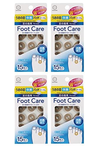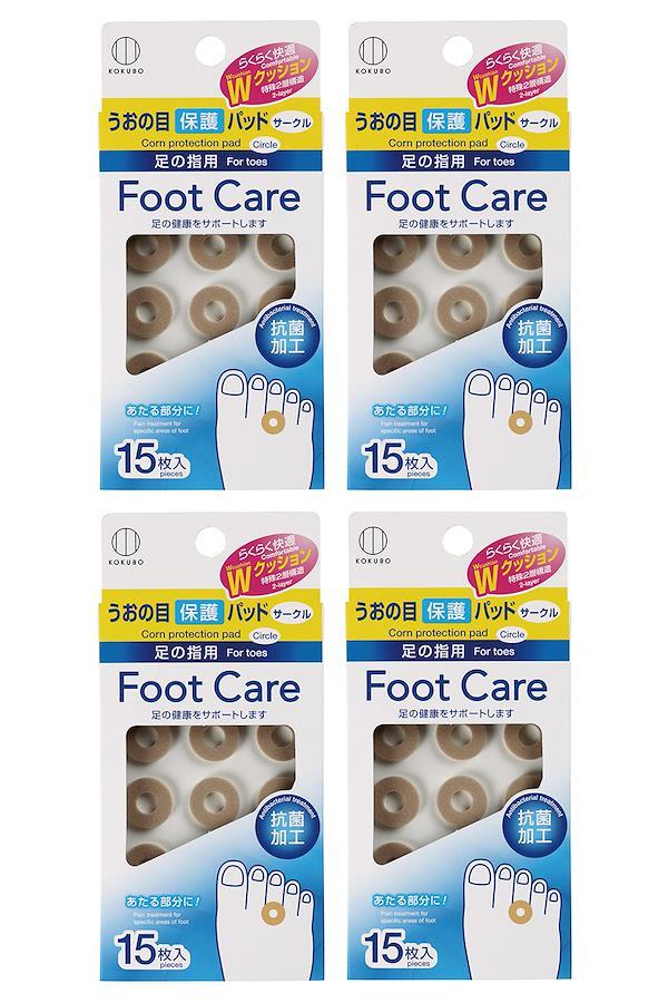 【特殊2層構造らくらく快適Wクッション】足指のまめ、うおの目、たこなどが当たる部分に貼って保護し、足の健康をサポートします。円型のパッドには中央に穴があいており、厚さ約3mmの特殊2層構造のらくらく快適Wクッションで、当たりをやわらげます。 【うおの目にお悩みの方おすすめ】足指のまめ、うおの目、たこが気になる方、うおの目を保護して当たる痛みをやわらげたい方におすすめの保護パッドです。抗菌加工、日本製、たっぷり使える15枚入×4個セットです。 【使い方】まず足をきれいに洗ったあと、よく乾かしてください。次に、うおの目やたこの痛い部分がパッドの穴の中央になるように軽く押し当てて、皮膚に直接貼ってください。 【使用上の注意】・パッドをはくり紙からはがす際は、破れないようゆっくりはがしてください。・貼付け部位に靴ずれ・傷のある方、絆創膏にかぶれやすい方はご使用にならないでください。・使用中にかゆみ・かぶれ等の異常があらわれた場合は直ちに使用を中止し、皮膚科専門医にご相談ください。 【仕様】フットケアうおの目保護パッド(サークル) / 入数:15枚入(15枚付×1シート)×4個セット / 材質:EVAフォーム、アクリル系粘着剤 / 原産国:日本