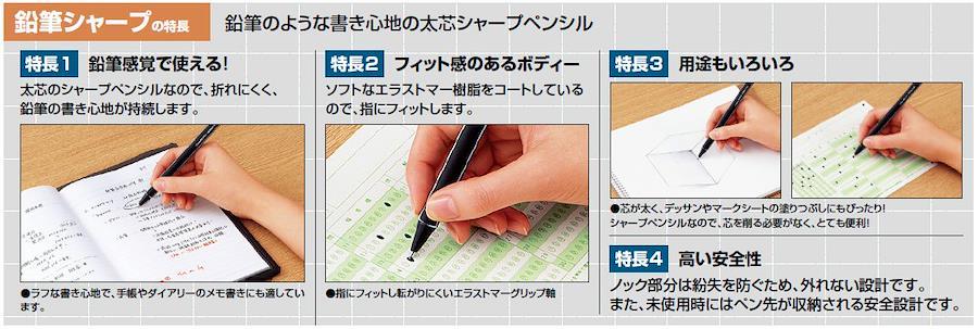 ●太い芯なので折れにくく、鉛筆のような書き心地です。