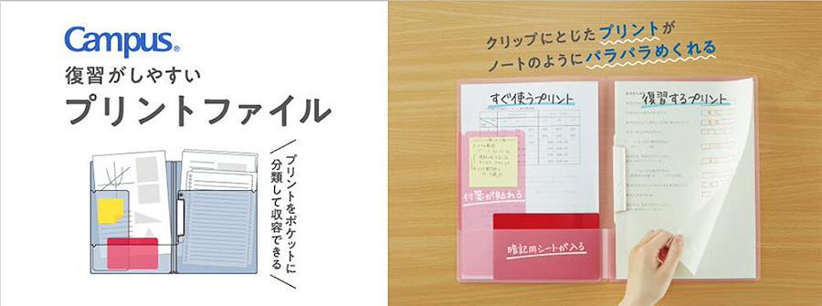 【商品説明】●プリントを分類できる2つのポケットと、覚えたいプリントをとじておけるクリップによって、プリントの保管と活用が1冊でできる。●クリップ/復習したいプリントをまとめられるクリップ(プリント10枚まで収容)。●クリップにとじたプリントはパラパラとめくれるので複数枚のプリントも確認しやすい。●メインポケット/プリント40枚までたっぷり収容できる。●サブポケット/プリント10枚まで分類して収容できる。赤シートなどの小さいものも取り出しやすい。●サブポケットの仕切りはふせんが貼りやすい鏡面仕様。●表紙を折り返せるので狭いスペースでも使いやすい。