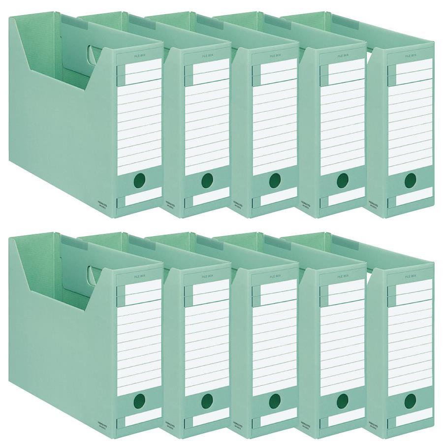 A4サイズのファイルボックス10個セット【外寸法(組み立て時)】高さ260mm・幅317mm・背幅102mm【本体寸法(組み立て時)】10×419×260mm【材質】ダンボール【カラー】緑【免責事項】メーカーによる商品リニューアルに伴いパッケージが変更が行われた場合、新パッケージでお届け致します事ご了承願います。