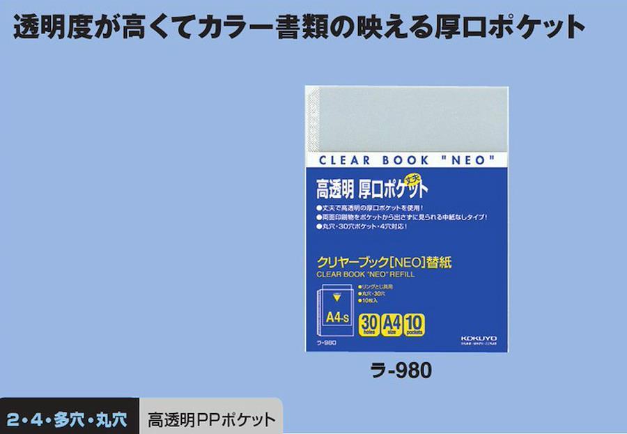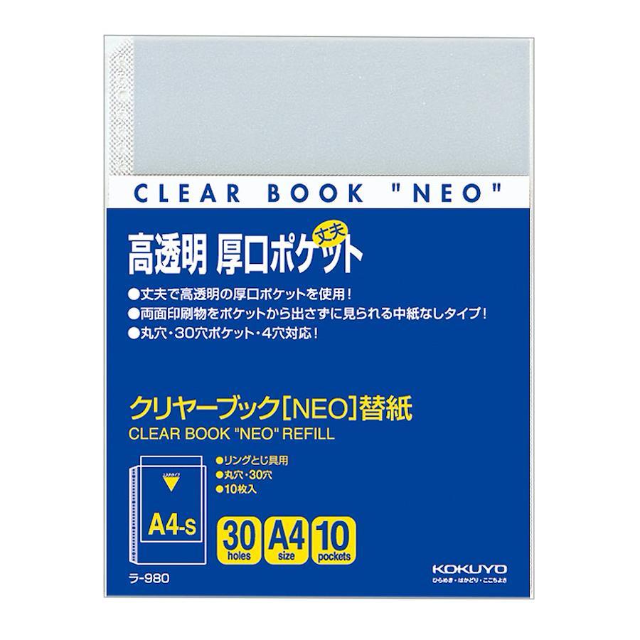 KOKUYO File Clear File NEO Replacement Paper Compatible with 2, 4, and 30 Holes A4 Vertical 10 Pockets La-980