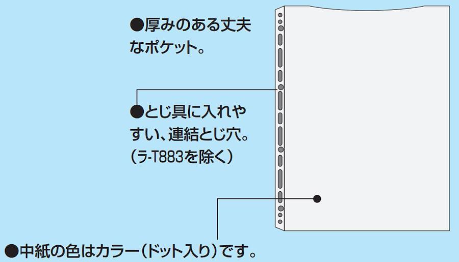 ●出し入れが簡単なウェーブカットポケットのクリヤーブック替紙です。●穴が大きく穴数が少ない連結とじ穴を採用しているので、とじ具に通しやすくなりました。●穴数は2、4、30穴に対応しています。
