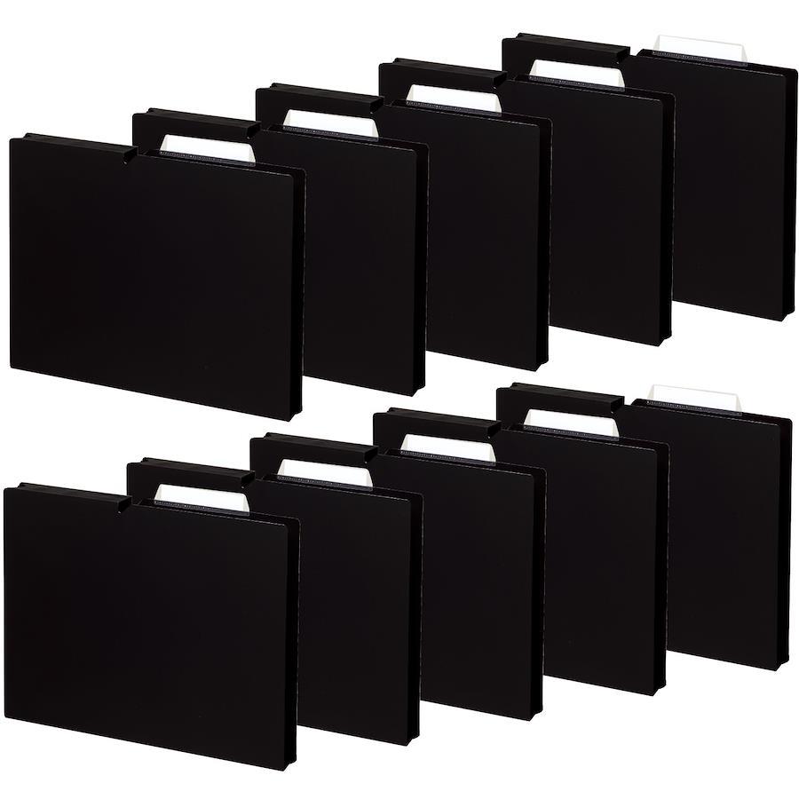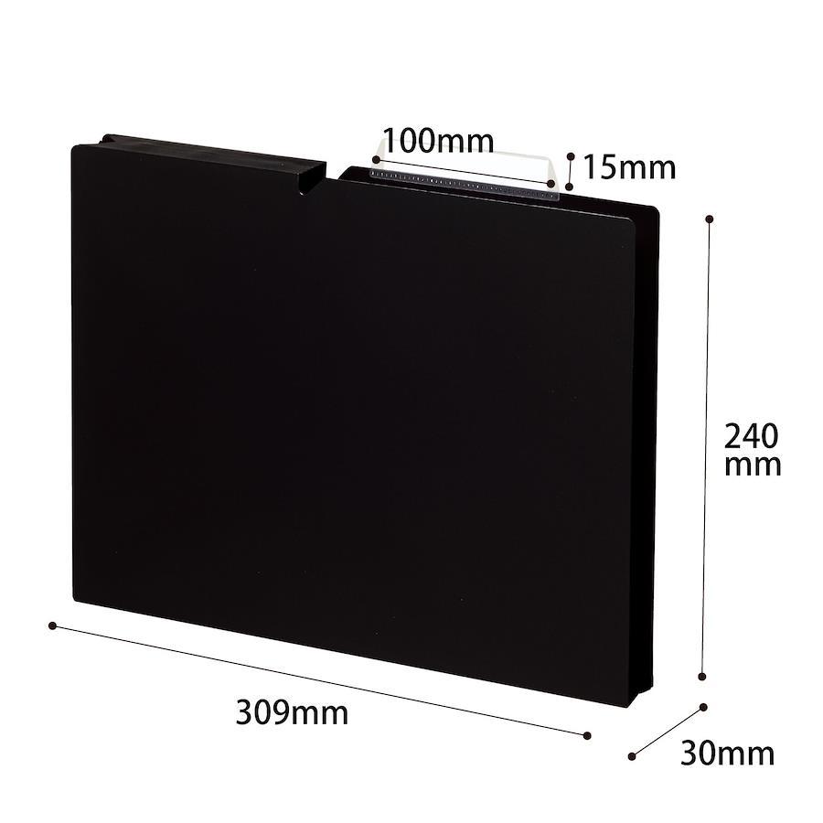 商品仕様●セット数/10冊●カラー/ブラック●サイズ/A4(309×240mm/見出し山高さ15mm)●マチ幅/30mm●材質/表紙:R-PPシート(厚み0.2mm)