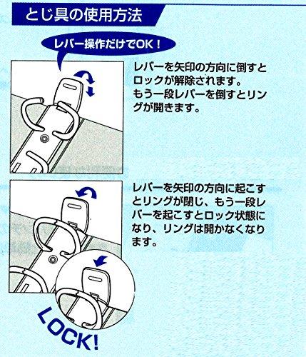 ●レバー操作するだけで開閉できるPP表紙のロック付きリングファイルです。●ロック機構付きのとじ具を採用しており、とじ具の開きを押さえ、書類が抜け落ちないようになっています。●コクヨ独自の新機構により、リングの開閉、ロックを片手で簡単に操作できます。●書類を保護するため、書類の両サイドに入れるプロテクターがセットされています。●機能的な分類には、裏面の背見出し紙をお使いください。