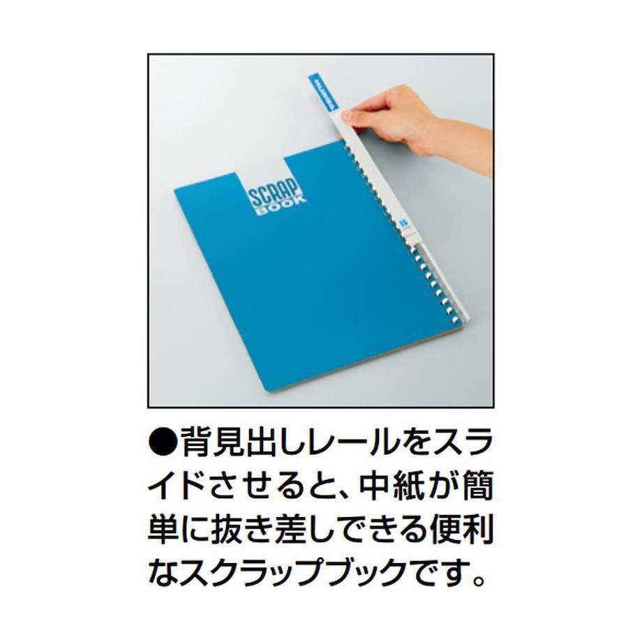 ●背見出しレールをスライドさせると、中紙が簡単に抜き差しできる便利なA4サイズのスクラップブックです。