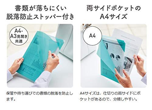 ●中仕切りが丈夫なので、大事な書類が折れないようにしっかり保護!外出時のかばんの中でも安心。●書類が落ちにくい脱落防止ストッパー付き。●書類の分類ができる両サイドポケット。●表紙/R-PP、中仕切り/PP●表紙PPシート厚み/180μm、中仕切りPPシート厚み/750μm●サイズ:A4●タテ・ヨコ(mm):312・223