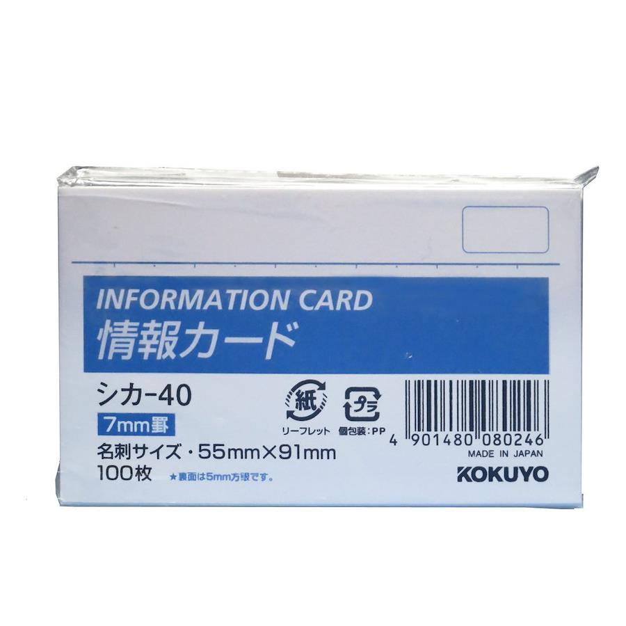 ●シカ-13Bのみ2穴 ●材質/上質紙 ●枚数/100枚 ●名刺横 ●縦55×横91 ●横罫 ●単位/1セット ●メーカー品番/シカ-40 表面が横罫、裏面が5mm方眼の情報カード。
