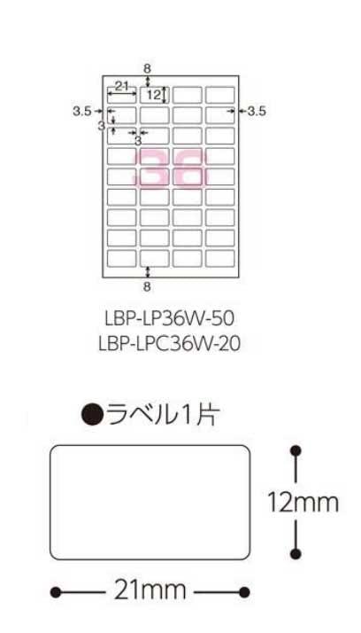 【仕様】サイズ:ハガキ面数:36面1片の大きさ:12×21mm枚数:50枚●材質/PETフィルム●厚み/ラベル本体:0.07mm(総厚138g/m2・0.12mm)●使用推奨温度/-20~100℃●耐薬品性を保証するものではありません。※インクジェットプリンタでは使用できません。※用紙厚さ138g/m2以上に対応する機種でお使いください。●用紙種類が選択できる機種で「厚紙」または「ラベル紙」に設定し、印刷してください。