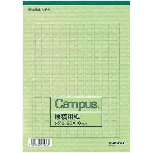 キャンパスの原稿用紙です。●仕様/B5、50枚入り●寸法/257・182●罫/縦書き(20×10)、罫色:緑●紙質/上質紙(薄口)●単位/1セット(10冊入)●メーカー品番/ケ-30N×10※本商品は、メーカーによるマイナーチェンジにより、購入時期と出品者により表示されている写真とは異なるパッケージの商品が配送されることがありますが、商品内容には変更ありません。