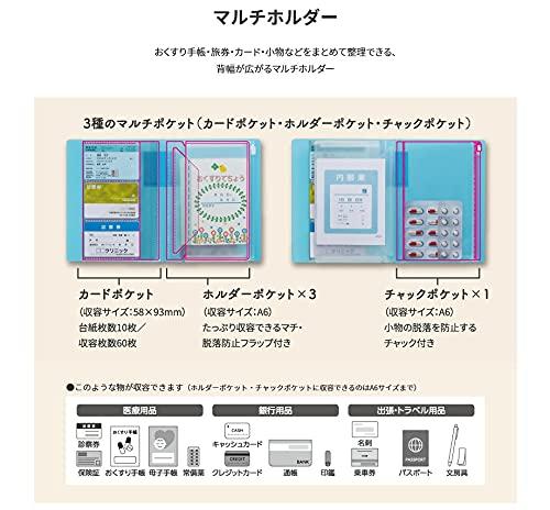 【商品説明】●背幅が変わる/書類の量に合わせて背幅が変わるので、いつでもコンパクトに書類を収容できます。●書類が少なくてもかさばらない/書類が少なくても背幅がかさばらず、無駄なスペースを作りません。使い始めから、コンパクトに保管できます。●書類が多くてもかさばらない/大量の書類を入れても、書類が丸まることなくすっきり収容。ファイルが膨らまないので、表紙もぴったり閉じることができます。●3種のポケットで、カードやA6 サイズの冊子(おくすり手帳、年金手帳など)、小物(クリップ、ペンなど)をまとめて整理することができます。※背幅が広くなった場合、外寸法の幅は少し小さくなります。※カードポケットの台紙枚数は10枚で、ポケット枚数は60ポケットです。