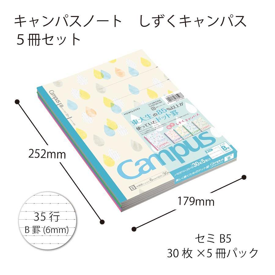 コクヨ ノート キャンパスノート 限定 B5 ドット入りB罫 しずくキャンパス 5色パック ノ-3CBTN-L29X5