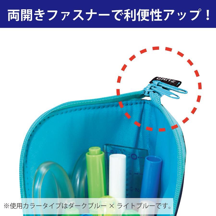 ●立てて使えて、場所をとらないペンケースです。●ファスナーを開けて上半分を折り返せば、ペンスタンドに早変わりします。●取り出しやすいうえに、机上の省スペースにもつながります。●ポケットが2つ付いているので、消しゴムなどの分類収容に便利です。●両開きファスナーなので、上部を開けるだけで、中身が取り出せます。●外側が明るいピンク、内側にドット柄を採用しています。
