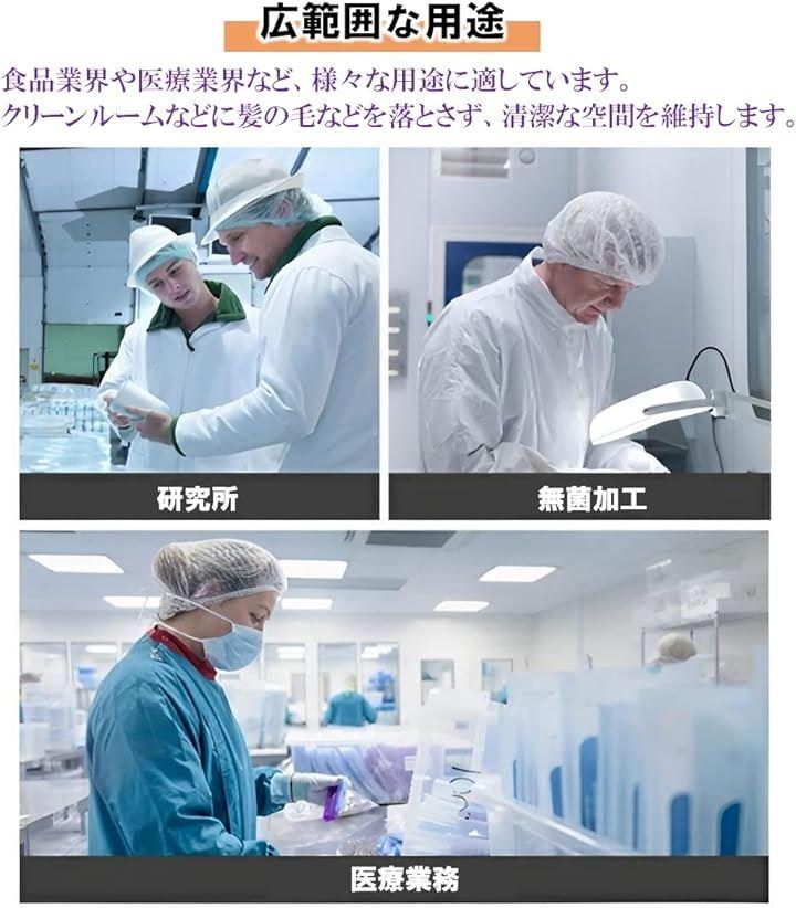 「衛生管理」使い捨てで衛生的な100枚入りヘアキャップは、食品加工から医療現場まで幅広く対応。