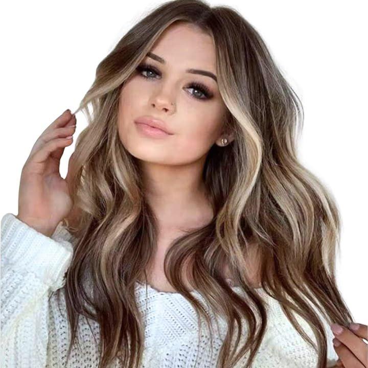 自然でセクシーな長髪のカラーは、ブラウンのハイライトでとてもおしゃれです。