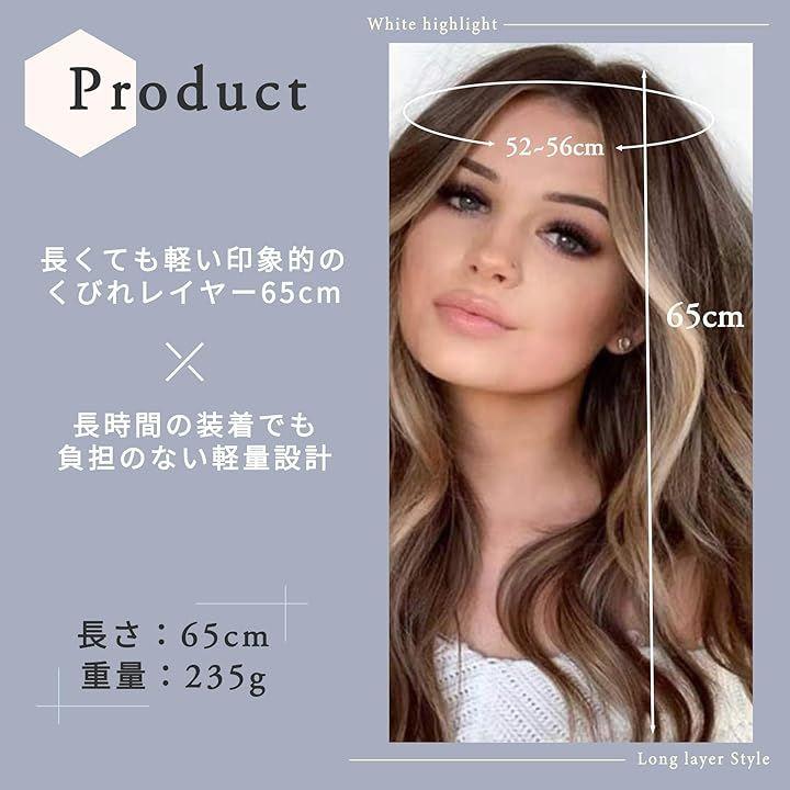 髪型 : くびれレイヤー ロング 長さ約 : 約65cm 頭囲 : 52~56cm カラー : ブロンズレイヤー