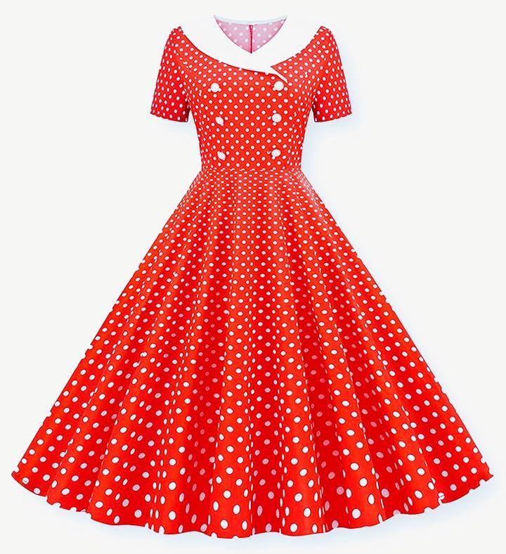 「エレガントなデザイン」このレトロな水玉柄ワンピースは、50年代のロカビリースタイルを現代に蘇らせます。
