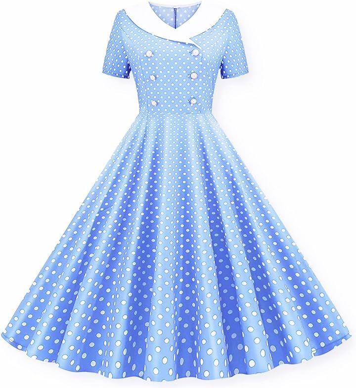 Komorebiya Women's Dress Polka Dot Short Sleeve A-Line Knee Length Dress Retro Dress Rockabilly Cosplay Blue