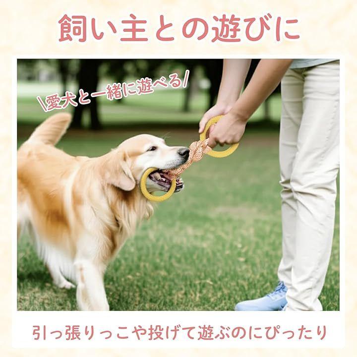 「遊びやすいロープ型おもちゃ」天然コットンのロープと弾力のあるTPR素材のリングを組み合わせたデザインで、噛んだり引っ張ったりして楽しく遊べます。