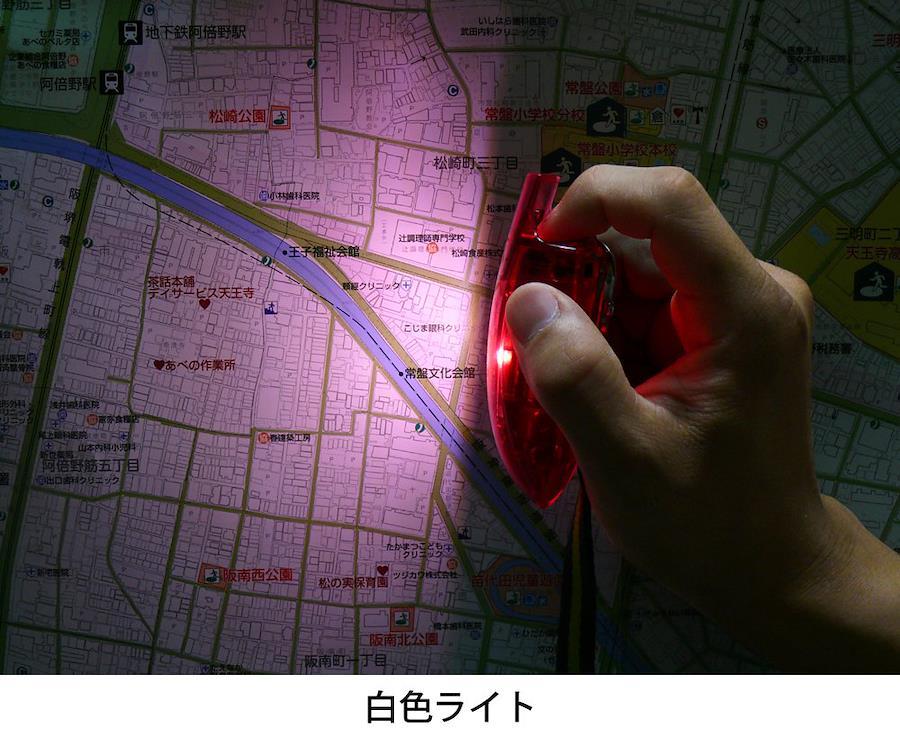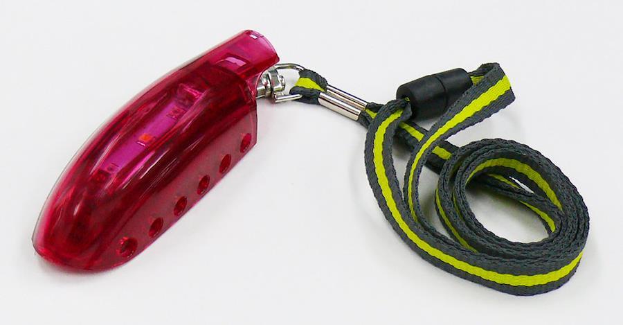 単4電池×1本の乾電池仕様なので、電池交換もラクラク(電池別売り)。ランニングコストが安い白色LEDライト→赤色LEDライト→赤色LEDフラッシュの切り替えが可能ホイッスル付きで、いざという時に役立つ首掛けストラップ&カラビナの2WAYでウォーキングやカバンに吊り下げ使用可能