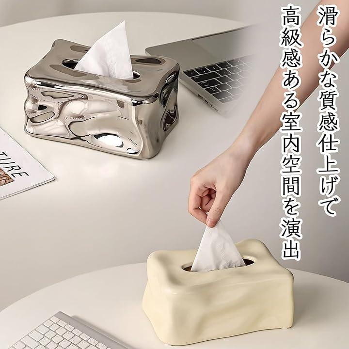 韓国風のおしゃれな陶器製ティッシュケースで、お部屋をカフェのような洗練された空間に変身させましょう。シルバーとオフホワイトの上品な配色が、どんなインテリアにも自然に馴染みます。
